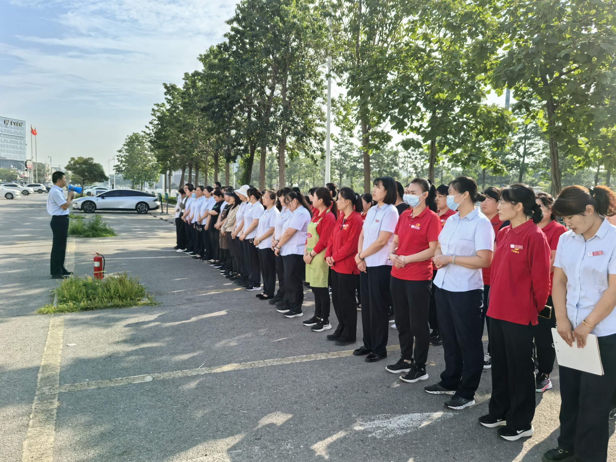6月9日早上,九州商業(yè)大廈楊莊店組織全體員工開展第二季度消防演練。