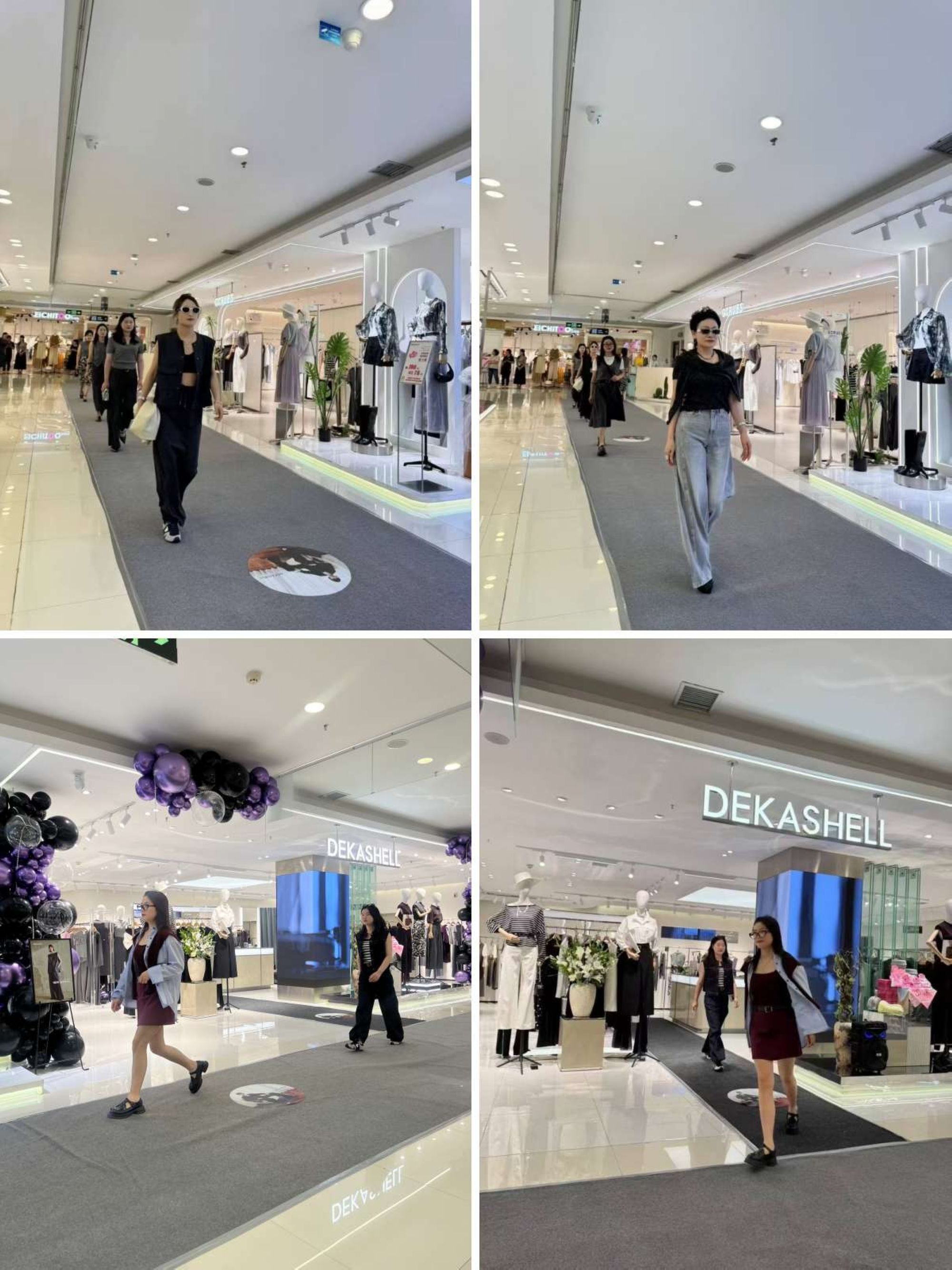 本次時(shí)裝秀以秋裝上新為契機(jī),模特們身著秋裝新品款款而行,以自信的姿態(tài)、時(shí)尚的穿搭,全方位展示品牌的精湛工藝和設(shè)計(jì)理念,不管是職場通勤還是休閑約會(huì),滿足都市女性不同場景的穿搭需求。整場走秀精彩紛呈,顧客紛紛駐足觀賞。