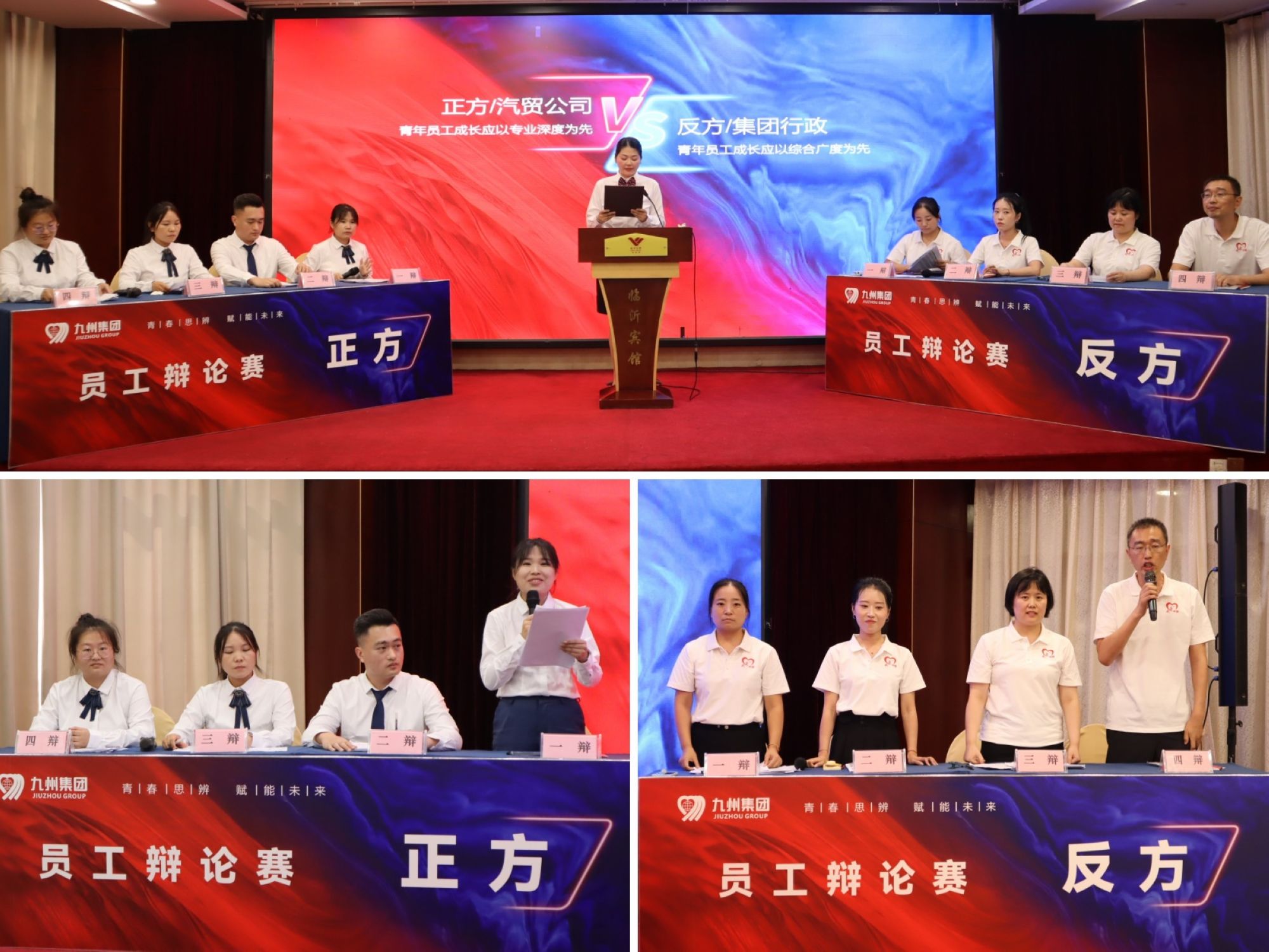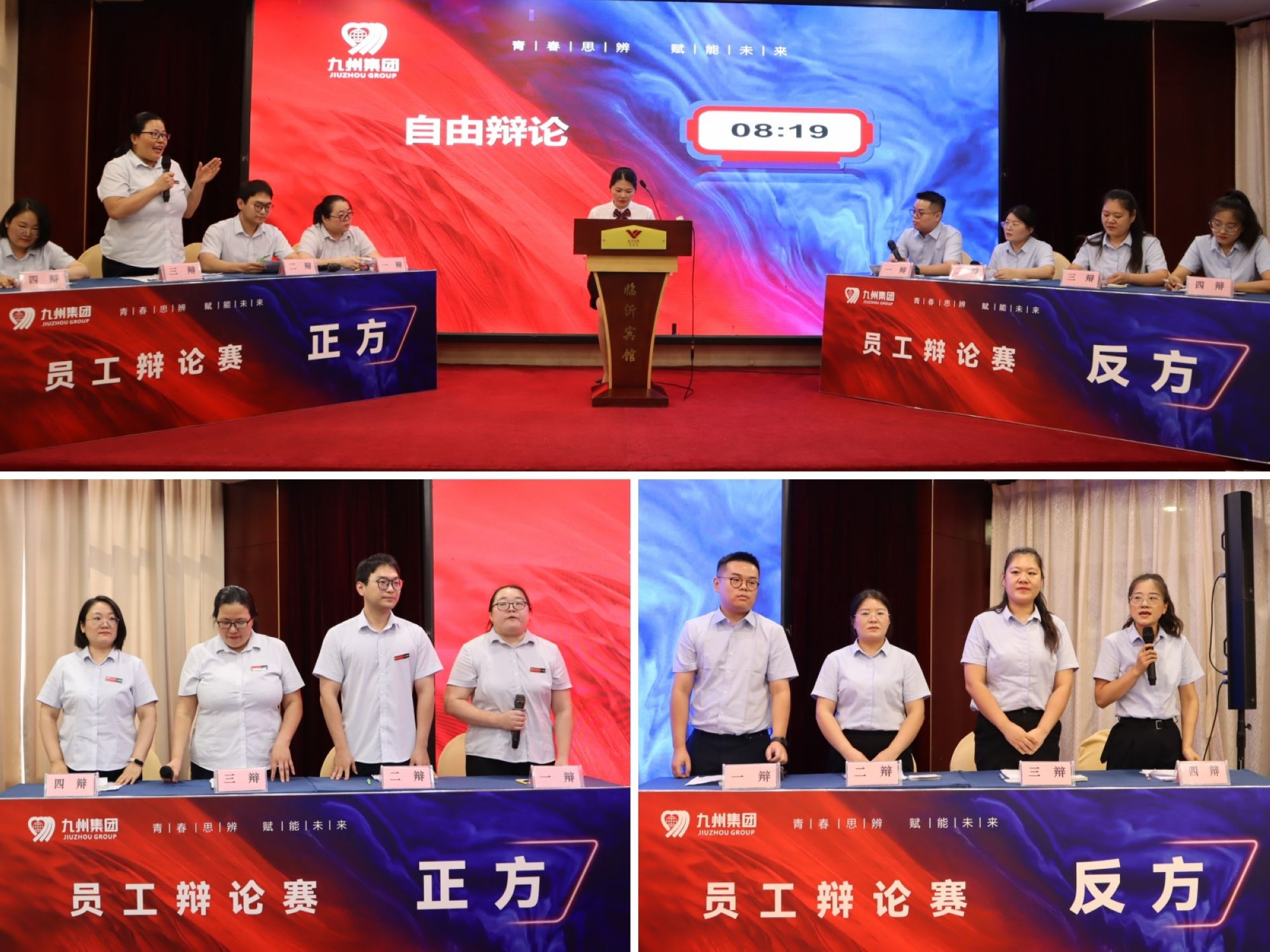7月24日,由集團(tuán)團(tuán)委主辦的“青春思辨 賦能未來(lái)”九州集團(tuán)員工辯論賽在臨沂賓館沂蒙路店成功舉辦,來(lái)自集團(tuán)各團(tuán)支部的六支代表隊(duì)共24名選手齊聚一堂,以辯會(huì)友、以論明理,展開(kāi)了一場(chǎng)思想碰撞與智慧交鋒的盛宴。
