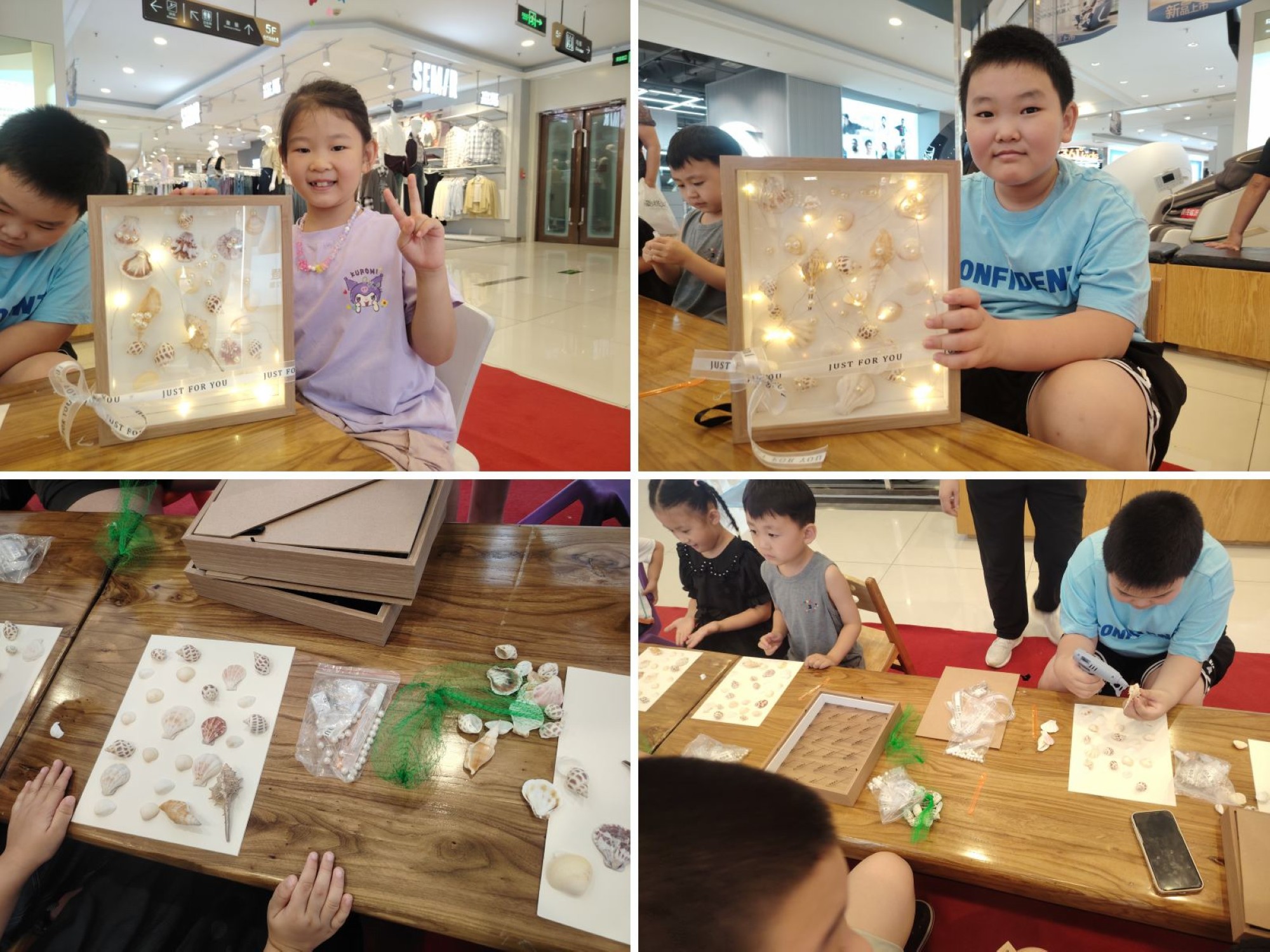 8月10日下午,九州商業(yè)大廈在解放路店五樓商場舉辦了一場別開生面的“貝殼相框畫DIY沙龍”親子活動,吸引了眾多家長和小朋友的熱情參與。
