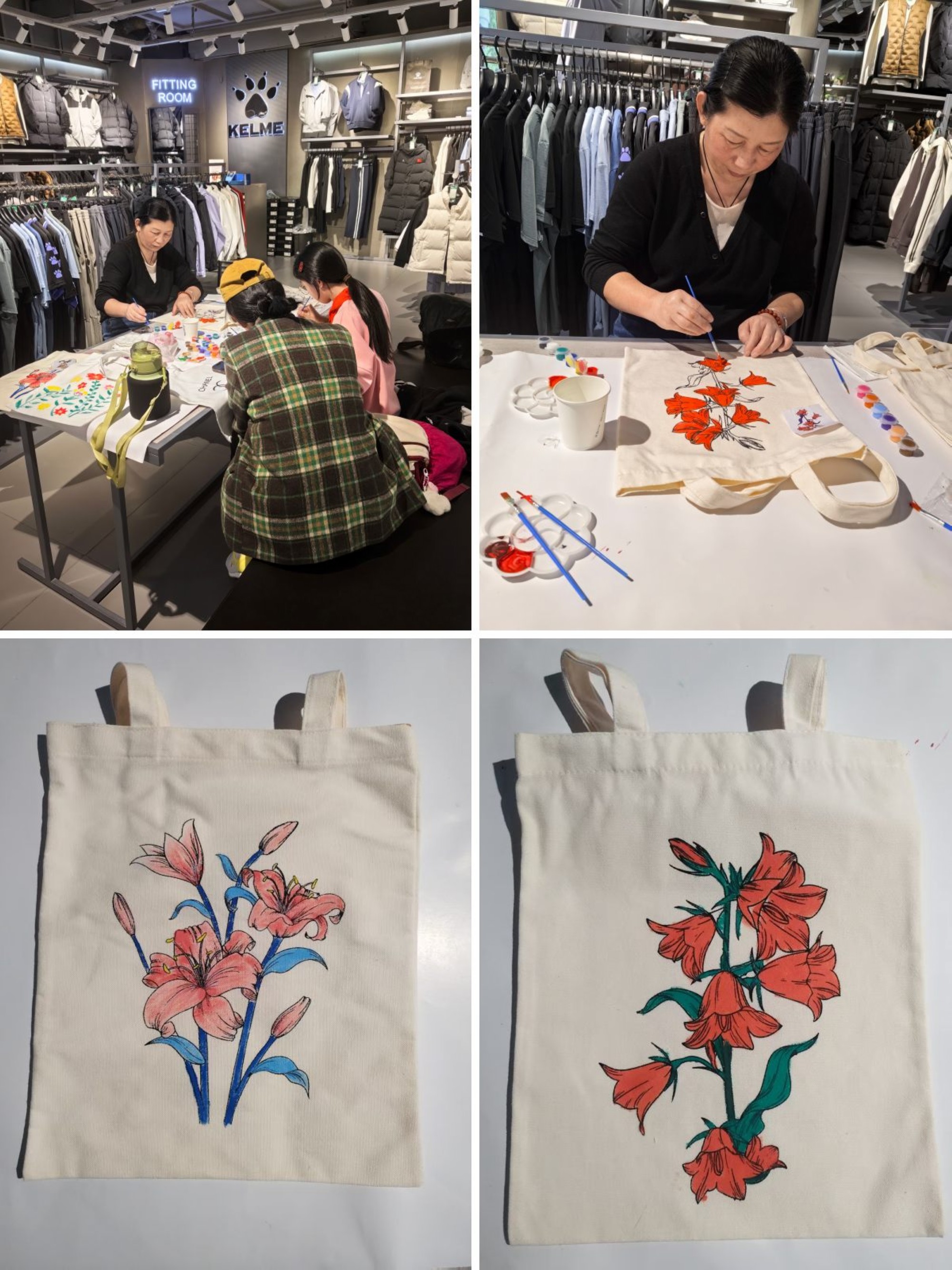 秋意正濃,藝趣時光,10月29日下午,九州商業(yè)大廈在解放路店五樓商場卡爾美(KELME)專柜開展了一場充滿創(chuàng)意與溫情的“秋日序曲”彩繪帆布包手作沙龍活動。