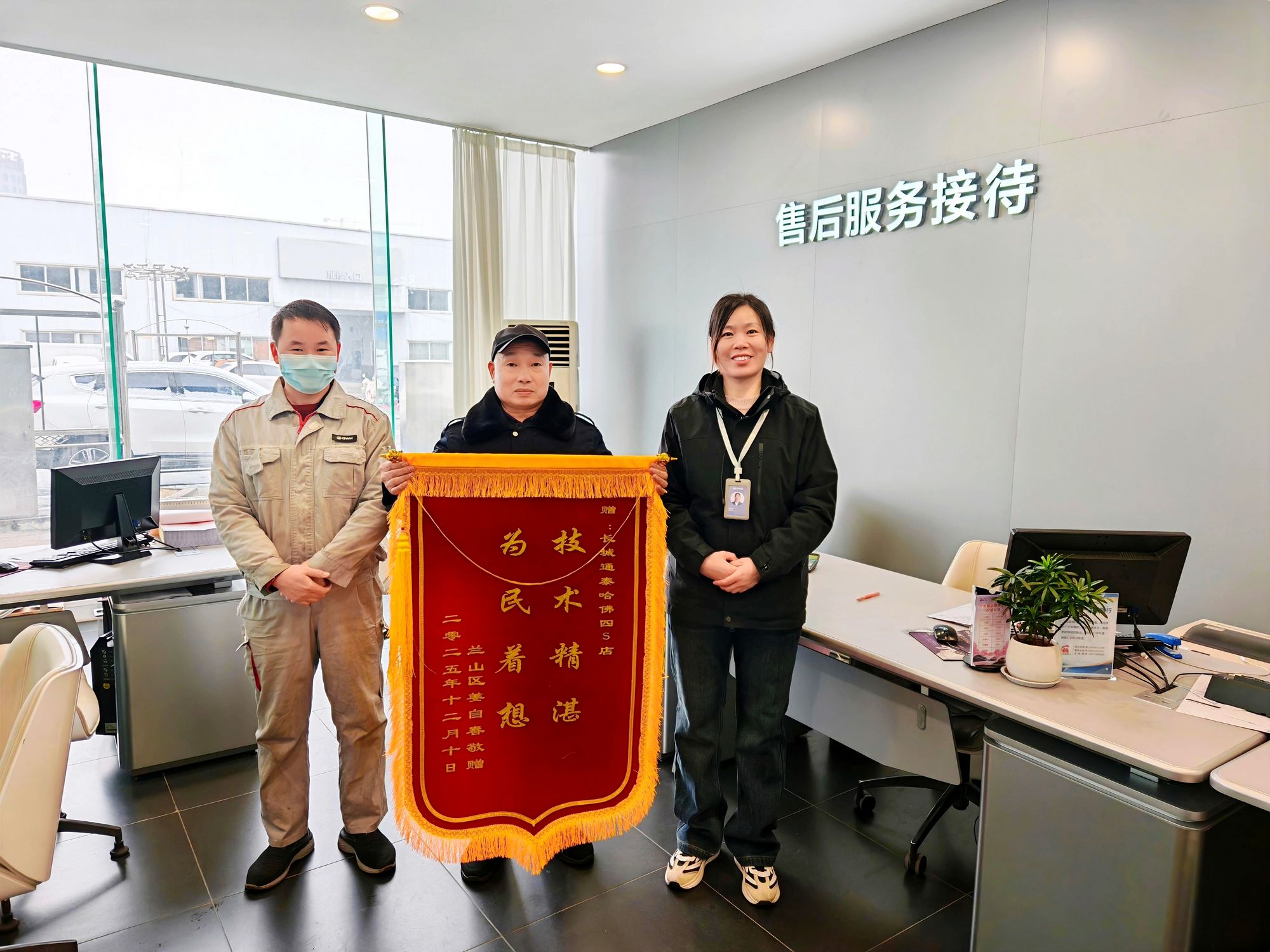12月13日上午,九州汽貿(mào)通泰服務(wù)站收到一面來自哈弗車主姜先生的錦旗!凹夹g(shù)精湛 為民服務(wù)”,話語雖然簡短,卻字字真情。